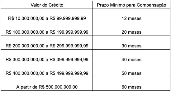 A Medida Provisória 1202/2023 impôs limites mais rigorosos para a compensação de créditos tributários acima de R$ 10 milhões. A partir de agora, a compensação desses créditos será mais lenta e gradual, com prazos mínimos definidos pela Portaria Normativa MF nº 14/2024. Vejamos abaixo:
